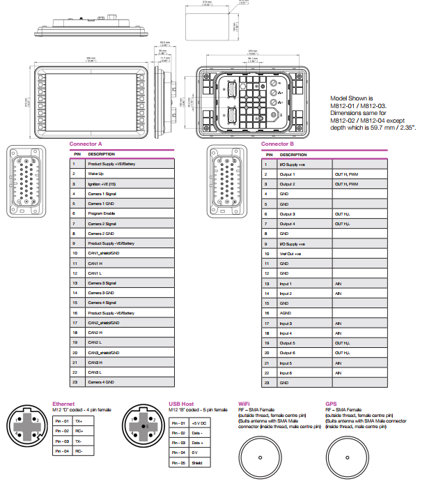 - 2 independent Ethernet interfaces, via M12 connectors (Camera support - RTP, RTSP, H264, MJPEG)